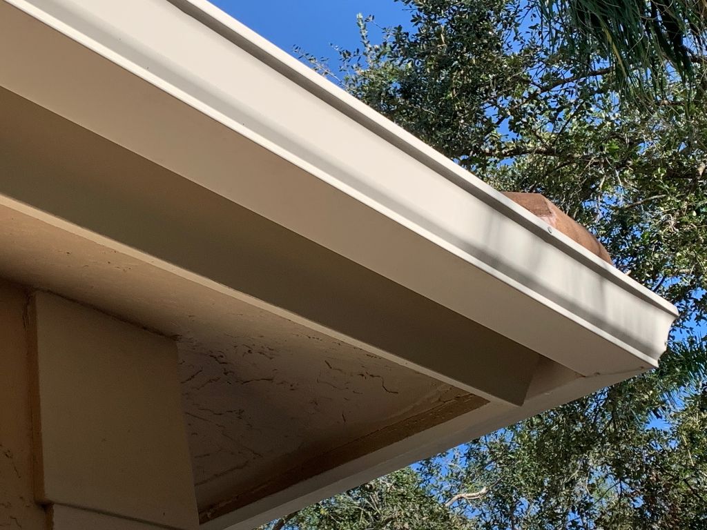 These gutters were both dirty and clogged! They had been neglected for several years. A small Ficus tree had taken root in one section. After our standard gutter cleaning process was complete we did Gutter Brightening service on the gutters located on the front of the home.